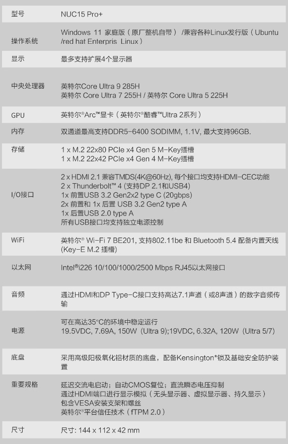 华硕NUC15 Pro mini迷你主机高性能商用AI办公台式机电脑 Ultra9-285H